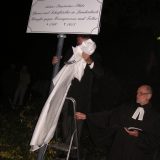 Laudenbach/Bergstrasse: Gedenkstein für Pfarrer Anton Praetorius vor der evangelischen Kirche. Hier war er Gemeindepfarrer 1598-1613. | Anton-Praetorius-Platz vor der evangelischen Kirche, gewidmet am Reformationstag 31.10.2010 | Fotos: Hartmut Hegeler
