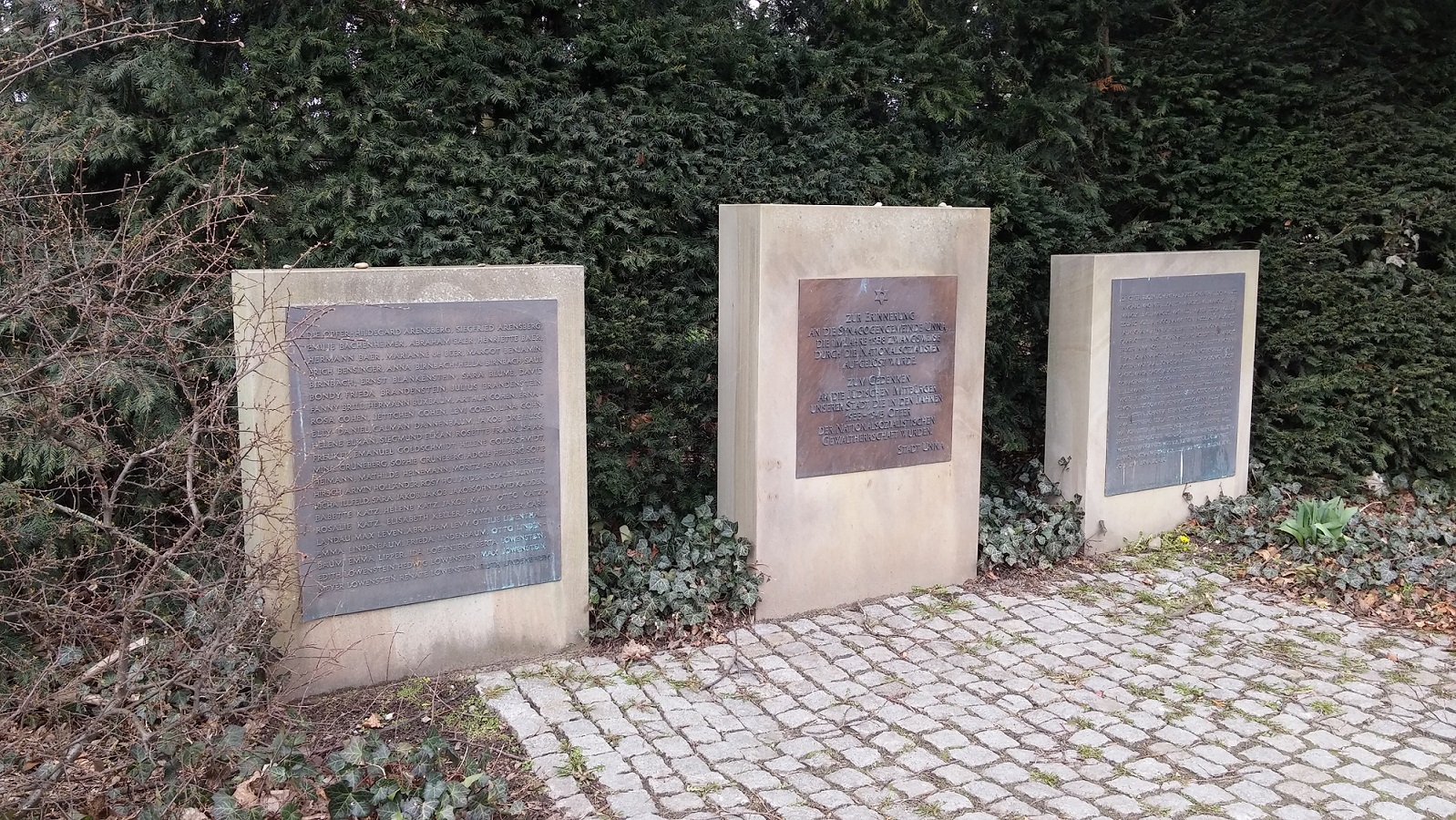 Denkmal zur Erinnerung an die Synagogengemeinde Unna, die im Jahre 1938 zwangsweise durch die Nationalsozialisten aufgelöst wurde – mit Namenslisten.