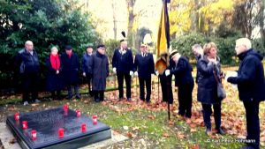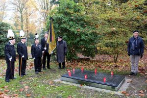 Gedenkfeier für die Opfer des Grubenunglücks. Gedenkveranstaltung am Totensonntag, 22. November, auf dem Westfriedhof in Unna. Die Ansprache hielt Pfarrer i.R. Hartmut Hegeler. Die Mitglieder des Knappenvereins Unna- Königsborn beteiligten sich in traditioneller Bergmannstracht. (Fotos Hegeler)