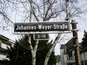 Düsseldorf Johannes-Weyer-Straße (1515/1516-1588), Arzt und Gegner der Hexenverfolgung.