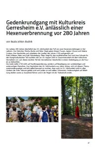 Gedenkrundgang mit Kulturkreis Gerresheim e.V. anlässlich einer Hexenverbrennung vor 280 Jahren. Von Beate Johlen-Budnik.