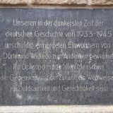 Unseren in der dunkelsten Zeit der deutschen Geschichte von 1933 – 1945 unschuldig ermordeten Einwohnern von Dortmund-Wickede zum Andenken gewidmet. Ihr Opfer möge allen Menschen der Gegenwart und der Zukunft ein Wegweiser zur Duldsamkeit und Gerechtigkeit sein.