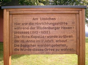 Gedenktafel für die Opfer der Hexenprozesse, Wildenburger Land, Rote Kapelle auf dem Blumenberg am Lindchen