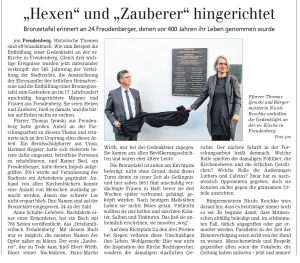 Die Bitte von Christiane Berlin wurde am Donnerstag im Freudenberger Rat erhört. Die Grünen-Politikerin warb um breite Zustimmung für eine Gedenktafel für die Freudenberger Opfer der Hexenverfolgung – der Rat nahm den Antrag, der schon einmal zur Debatte stand (die SZ berichtete), einstimmig an. Die Verwaltung soll sich nun um die Herstellung und Beschaffung einer Gedenktafel als Bronzeguss kümmern; diese soll am Turm der ev. Kirche angebracht werden.