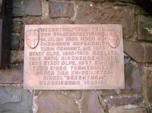Inschrift am Hexenturm in Olpe, am 25.4.2002 enthüllt