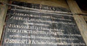 Inschrift auf der Rückseite des Altars: Liste der Pastoren: