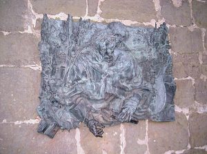 Rüthen Hexenturm Bronzerelief von 1991 vom Bildhauer Bert Gerresheim erinnert an Friedrich Spee und den Hirschberger Landpfarrer Michael Stappert