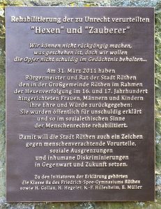 Rüthen Denkmal Hexenturm Tafel – Rehabilitierung der zu Unrecht verurteilten Hexen und Zauberer