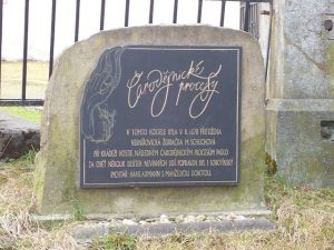 Vernirovice Tschechien – Gedenktafel für Marina Schuchova, 1679 in einem Hexenprozess hingerichtet