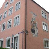 Gemälde am Haus an der Agnes-Bernauer-Straße, Denkmal an der Agnes–Bernauer–Brücke über die Donau entstand beim Neubau der Brücke 1954/55