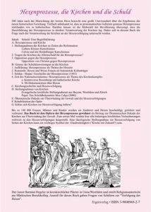 Das Buch möchte Anstoß geben für eine glaubwürdige christliche Stellungnahme zu den Hexenverfolgungen und damit einen bedeutsamen Beitrag leisten zur kirchlichen Diskussion im Rahmen der „Dekade zur Überwindung von Gewalt“.